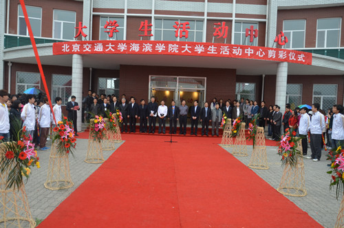 北京交通大学党委副书记、我院院长高福廷致剪彩仪式开幕词,他首先代表我院全体师生向出席剪彩仪式的各位专家和领导表示热烈的欢迎,同时希望我院的学生工作队伍再接再厉、踏实进取,以大学生活动中心落成启用为契机,再谱我院学生工作的新篇章。河北省学位办副主任赵清云致贺词,祝贺我院大学生活动中心落成启用,同时结合我院实际,对我院发展提出了指导性意见,他相信在我院全体师生的共同努力下,我院的建设和发展一定会再创新高。最后,孙文博处长宣布北京交通大学海滨学院大学生活动中心正式使用,到场的各位专家和领导共同为大学生活动中心剪彩。