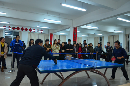 2011年12月14日—17日,我院首届教职工乒乓球比赛在行政楼教工之家成功举办。执行院长王大勇,党委书记路加栓,副书记、副院长、工会主席张长铎,副院长贾怀义、周俞波等领导出席了开、闭幕式,并积极参与其中。