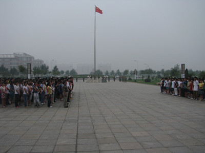 为迎接党的生日,庆祝中国共产党建党九十周年,弘扬爱国主义精神,2011年7月1日早7点,海滨学院在图书馆前举行了隆重的升国旗仪式。学院领导、老师、党员学生们共同参加了升旗仪式。