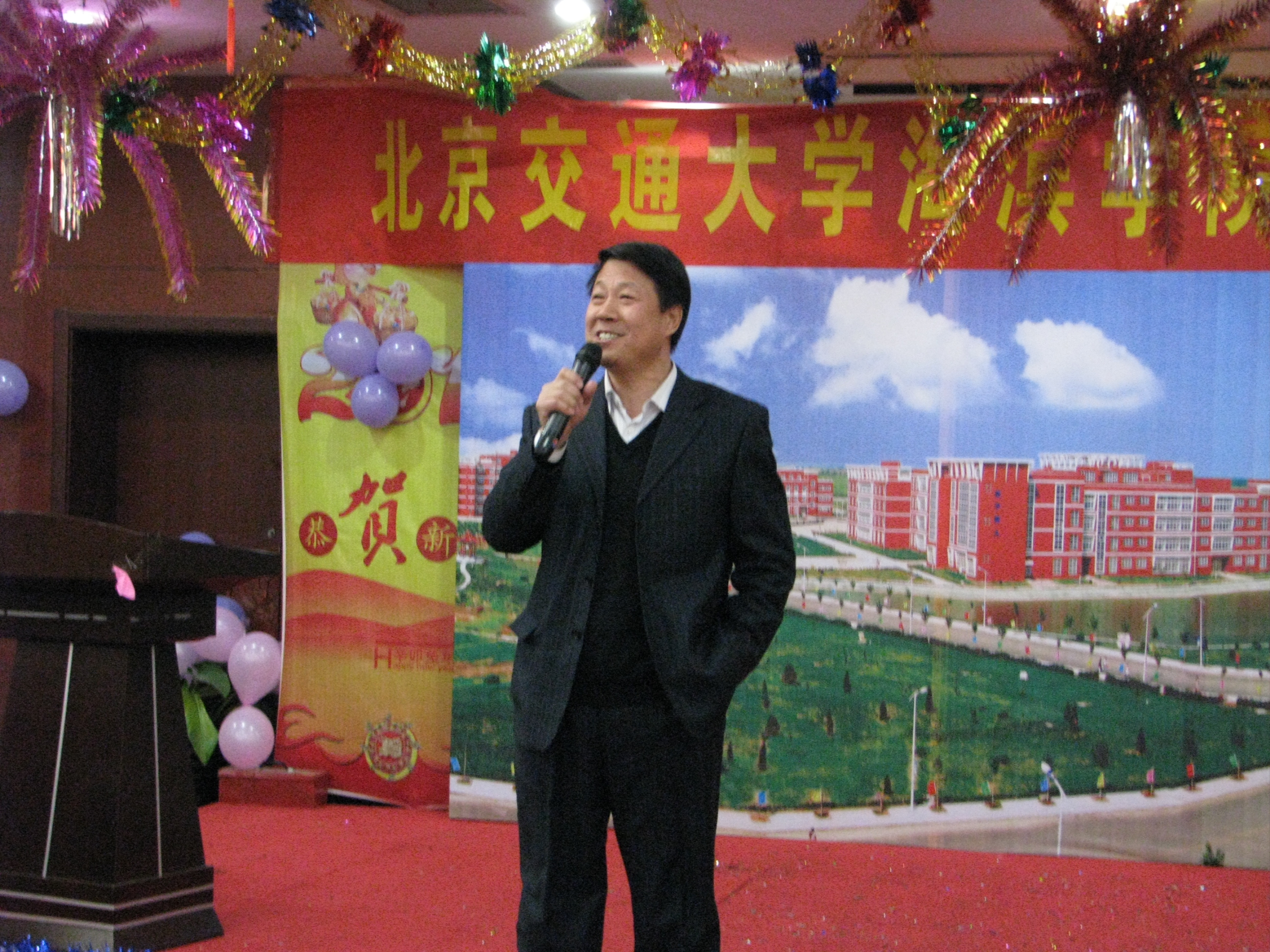 我院于12月30日晚在华悦凯旋大酒店南海厅隆重举行2011年新年招待会。黄骅市人民政府市长边老刚,学院董事长薛行远,北京交通大学党委副书记、院长高福廷以及全体院领导和华城科教有限公司有关负责人与全院教职工欢聚一堂、辞旧迎新、共谋发展。