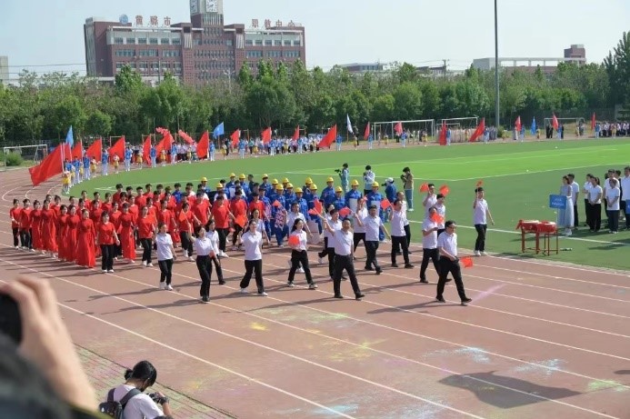激情燃烧,活力绽放。5月17日上午8时,以“五育融合绽华彩,健康运动向未来”为主题的第十三届田径运动会开幕式于我校操场隆重举办。渤海新区黄骅市人民政府副市长张桂云,我校校长章梓茂,党委书记庞更新,副校长赵金楼,副校长王忆宁,以及各二级单位负责人出席此次开幕式。党委副书记吴立军主持本次开幕式。