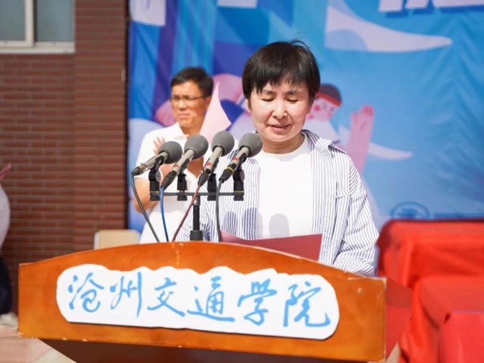 渤海新区黄骅市人民政府副市长张桂云代表渤海新区党工委、管委会、黄骅市委市政府对我校第十三届田径运动会隆重开幕表示了热烈的祝贺,并向我校全体师生致以亲切的问候和关怀。她指出体育是提高人民健康水平的重要途径,是促进经济社会发展的重要动力。田径运动会是师生们体验比赛魅力、诠释体育精神、展现青春风采的重要舞台,希望全体运动员发扬体育精神,释放青春力量,赛出风格、赛出水平,将本届运动会办成一场振奋人心的体育盛会;更希望大家把体育赛场上勇于拼搏的精神,转化为实干笃行、担当作为的强大动力,真正成长为堪当时代重任的新时代青年!