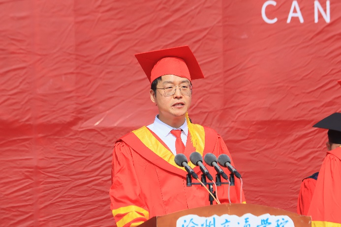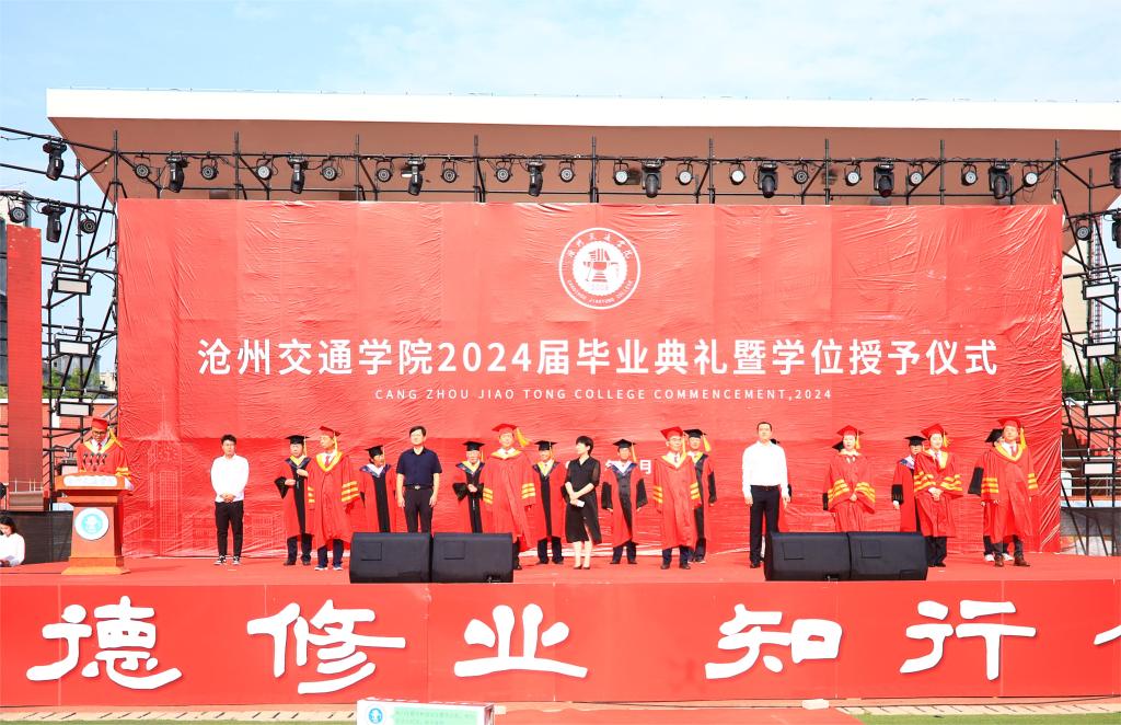 回顾四载春华秋实,喝彩盛夏硕果累累。6月13日上午8时我校2024届毕业典礼暨学位授予仪式于体育场隆重举行。渤海新区黄骅市人民政府副市长张桂云,北京交通大学驻校办学督察任虹宇,渤海新区黄骅市教育局局长何寿彪,我校校长章梓茂,党委书记庞更新,副校长、财务总监余裕玲,副校长赵金楼,副校长王忆宁,党委副书记、副校长邵晓康出席本次典礼。党委副书记吴立军主持典礼。