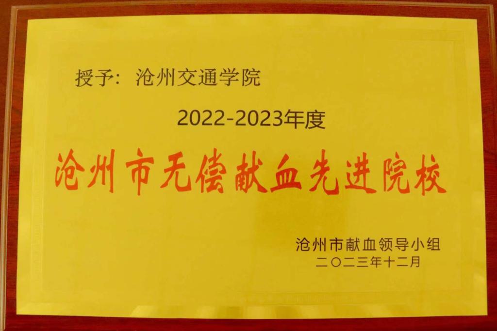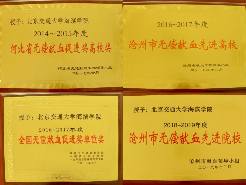 我校自2012年成立无偿献血志愿服务分队以来,共有7000余人次累计献血200万余毫升。期间,我校荣获多项荣誉:2014-2015年度河北省无偿献血促进奖高校奖、2016-2017年度全国无偿献血促进奖单位奖、2016-2017沧州市无偿献血先进高校、2018-2019年度沧州市无偿献血先进院校、2020-2021年度全国无偿献血促进奖特别奖、2020-2021沧州市无偿献血先进院校、2022-2023年度沧州市无偿献血先进院校。在无偿献血的志愿服务中,志愿者们在社会各界留下了属于沧交的奉献足迹。
