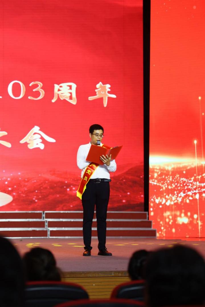 凝心聚力谋发展,踔厉奋发谱新篇。6月27日,我校于天佑会堂隆重举行庆祝中国共产党成立103周年暨“七一”表彰大会。我校党委书记庞更新,校长章梓茂,副校长、财务总监余裕玲,副校长赵金楼,副校长王忆宁,党委副书记、副校长邵晓康,党委副书记吴立军,党委委员张丽艳、杨中建、杨婷婷出席大会,全体中层干部、各基层党组织书记、全校师生党员、入党积极分子代表参会。学生处副处长孙经纬主持大会。