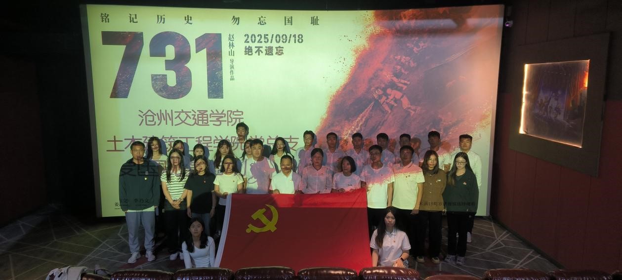 9月23日,我校土木建筑工程学院党支部组织全体师生党员开展“铭历史之痛,铸自强之魂”观影活动,通过集体观看重大历史题材影片《731》,党员们在光影中回望民族苦难岁月,从历史中汲取奋进力量。